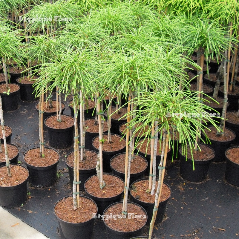 A noter que pour qu'il reste joli dans sa forme juvenile il est bien de le tailler environ tout les 2 ans au début du printemps afin de rabattre certaines branches dégarnies pour qu'elle se ramifient.